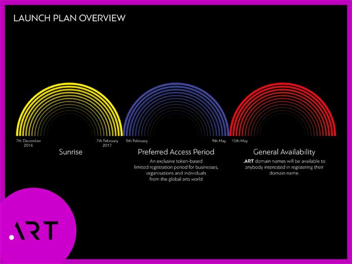 We believe that .art is a generic gTLD, and we are pleased to accept pre-registration domain name applications for this TLD. By choosing to pre-register now, we will notify you about any upcoming developments relating to the proposed use of this TLD domain name.